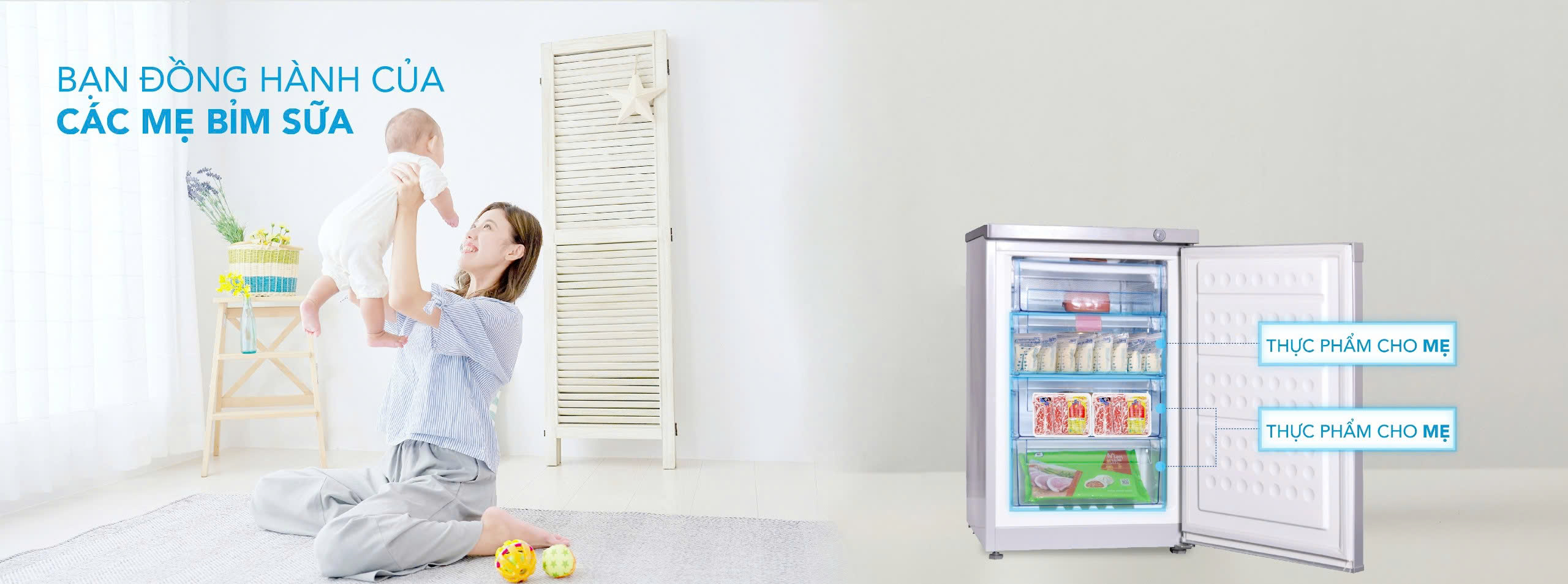 với tủ đông đứng hoà phát, các mẹ bỉm có thể an tâm lưu trữ sữa trong thời gian dài mà không lo bị hỏng,đông thời việc chia ngăn cũng sẽ tối ưu được việc sắp xếp bữa ăn khoa học cho con hàng ngày.