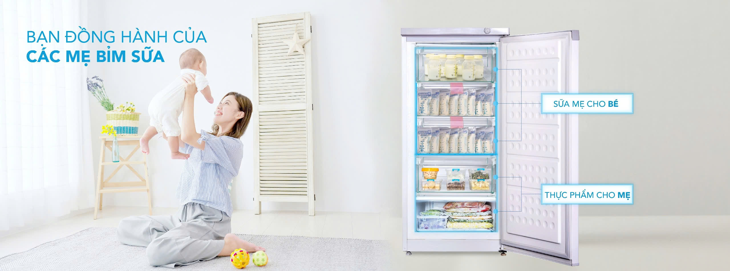 với tủ đông đứng hoà phát, các mẹ bỉm có thể an tâm lưu trữ sữa trong thời gian dài mà không lo bị hỏng,đông thời việc chia ngăn cũng sẽ tối ưu được việc sắp xếp bữa ăn khoa học cho con hàng ngày.